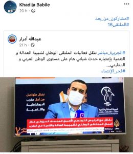 ونشر العشرات من شباب منظمة شبيبة العدالة والتنمية، صورهم الشخصية وهم يتابعون ندوات الملتقى مرفوقة بوسم “#مشاركون_رغم_البعد”، للدلالة على حرصهم على متابعة أطوار الملتقى عن بعد، رغم ظروف الجائحة التي منعتهم من الحضور الميداني لفعاليات الملتقى، التي لن تثنيهم عن الاستفادة الفكرية والسياسية من فقرات هذا الحدث السنوي الشبابي المهم.